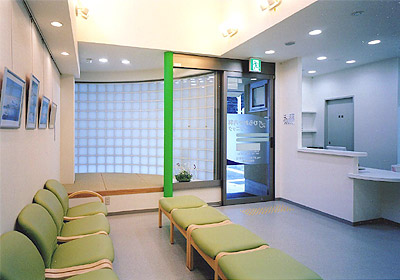 大きな屋根と緑の方杖。内部はやわらかな光あふれる癒し空間。
